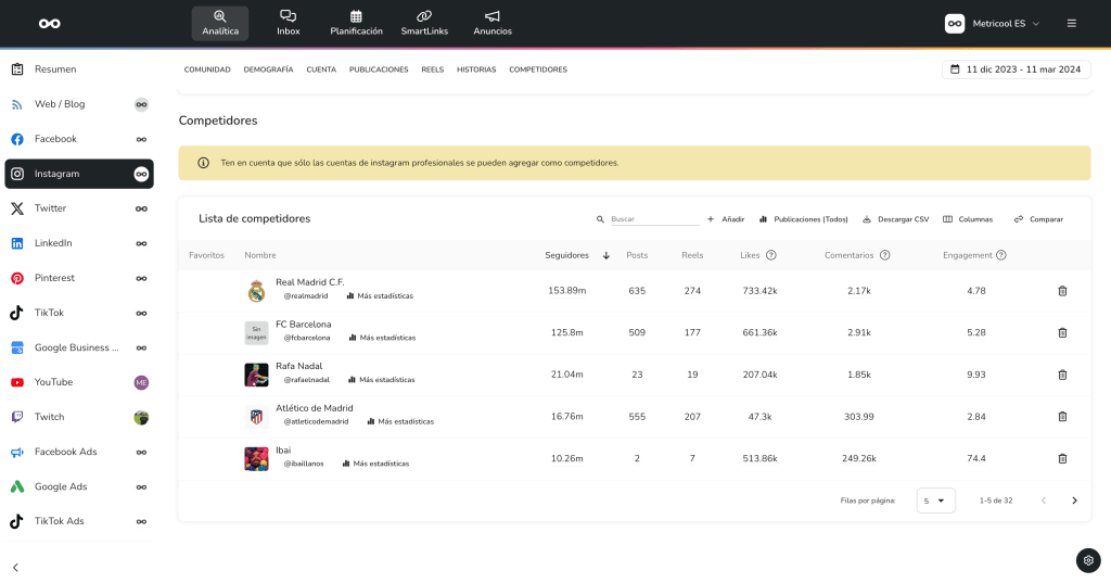 ¿Quieres medir el rendimiento de tu competencia en Instagram? Así es la funcionalidad de competidores de Instagram con Metricool.